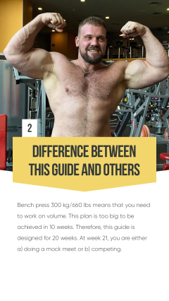 The guide will be useful if you already reached 440 lbs in bench press. You will not only adjust your technique, but also overcome plateau and increase your progress many times over.