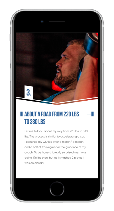 I never doubted the fact that I will hit two plates in bench press but I have never thought of what you need to do it. I was surprised by the importance of being 100% strict with guidelines! I liked the way how it’s structured, so easy and clear. Still excited of reaching the goal of 100 kg in bench press: I’m the man now!